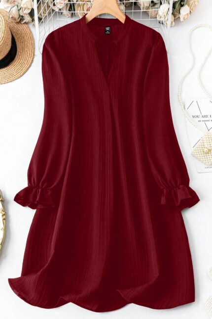 This Women’s Embroidered Red Top features a flattering V-neck design with delicate ruffled sleeves and intricate embroidery. Made from soft fabric, it offers both elegance and comfort, making it perfect for casual outings or semi-formal events.