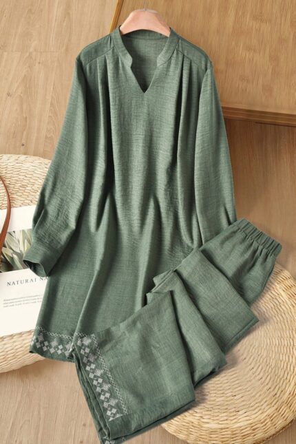 This elegant Women’s Embroidered Sea Green Set features a stylish top with delicate embroidery at the hem, paired with comfortable, matching trousers. Made from soft, breathable fabric, it offers both comfort and sophistication for any casual or formal outing.