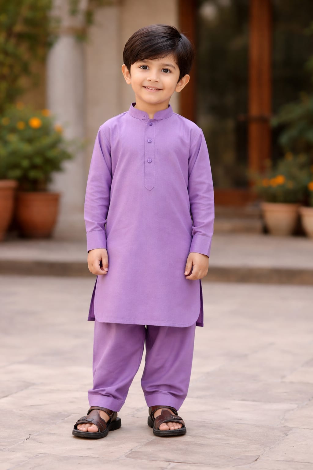 The Kid’s Shalwar Kameez is available in a variety of beautiful colors, including soft Beige, classic Black, refreshing Pistachio, and vibrant Purple Maroon. These colors are versatile and suitable for both casual wear and special occasions.