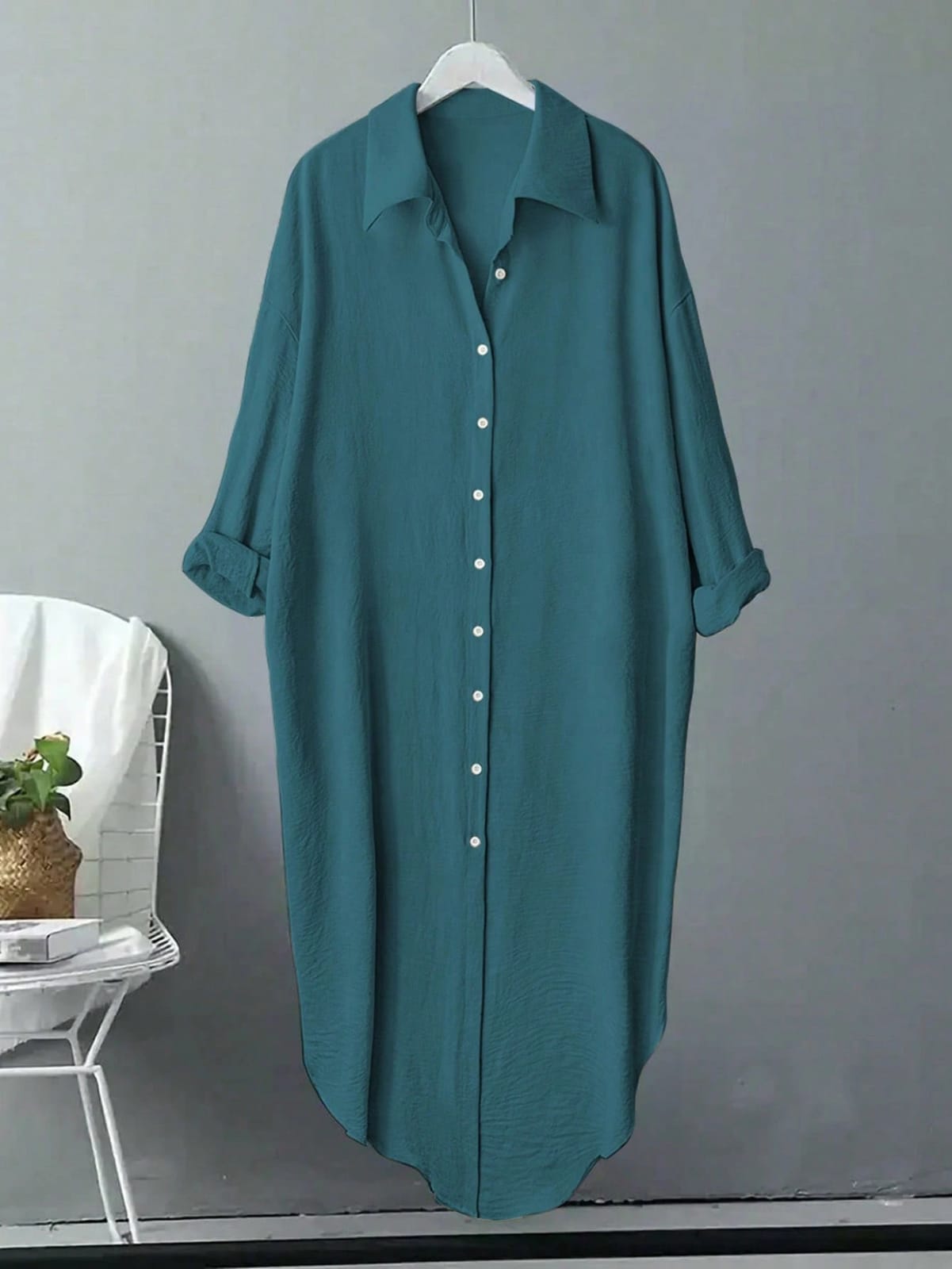 This Women’s Sea Green Top features a relaxed, oversized fit with a stylish collar and button-down design. Made from soft, breathable fabric, it provides both comfort and modern elegance, perfect for casual outings or relaxed workdays.
